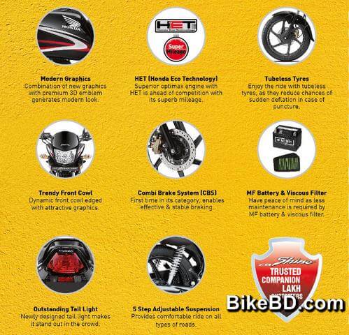 As per Honda this Superior Optimax Engine designed with HET (Honda Eco Technology). This HET feature ensures superb mileage in blend of decent power. So you can see Honda CB Shine is one step forward in competition of other 125cc commuters.