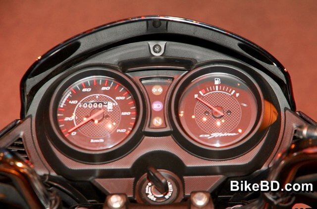 On the other part the ODO console of the bike constructed with dual round pit construction. The disappointing thing is that the odo is all analog and there is no rev counter. You will find here only speedometer, Odo, fuel gauge and lighting indicators.