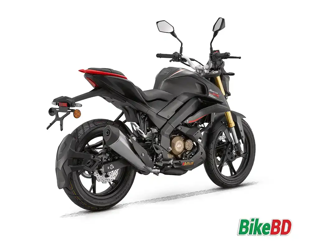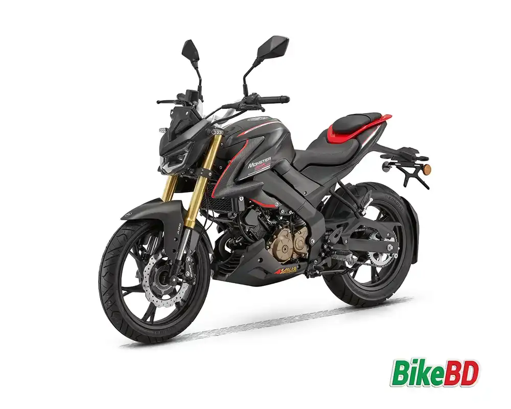 In the braking system, the motorcycle comes with hydraulic disc braking setup on both wheels. Coming to the suspension system, the QJ Motor Monster SRK 180 comes with a USD hydraulic telescopic fork suspension system in the front, and at the rear, it holds a 7-step adjustable mono suspension attached to the center of the swingarm.