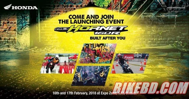 The entire event will be held for two days event. On 16th February, gate will be opened at 4.00pm for the launching program of Honda CB Hornet 160R, Media Brief, Price Declaration, Test Ride, Gymkhana Competition, Stunning, Graffiti, Gaming, Booking of CB Hornet 160R, and Rock Concert of Warefez. On the second day, 17th February, gate will be opened at 10.30am and 2nd day’s programs are Test ride, Gymkhana Competition, Test Ride, DJ Sonica Performance, Rock concert of Metal Maze, Mechanix, & Vikings. The first Key of CB Hornet 160R will be handover to the first Bangladeshi Customers on the Stage.