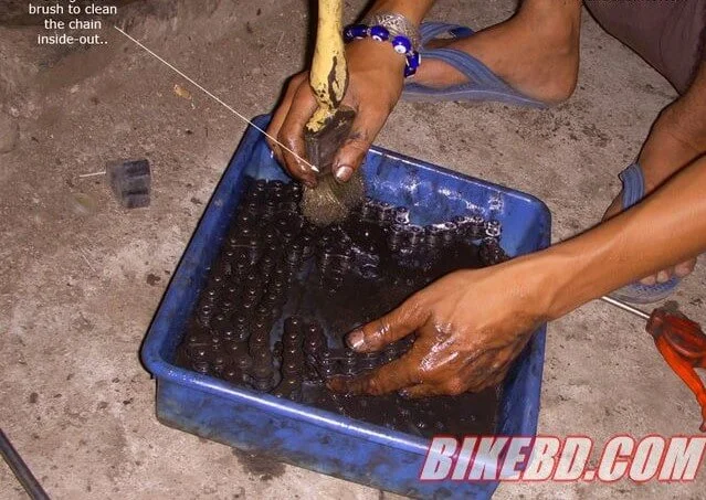 1/ It is an open type of drive chain, therefore, it becomes muddy and dusty easily. 2/ Metal to metal has a tendency to make friction so those make noise whenever the drive chain becomes dry. 3/ Due to using gear oil or grease the drive chain attracts more dust and becomes dry easily. 4/ Improper slackness which occurs from an adjustment from a local workshop.