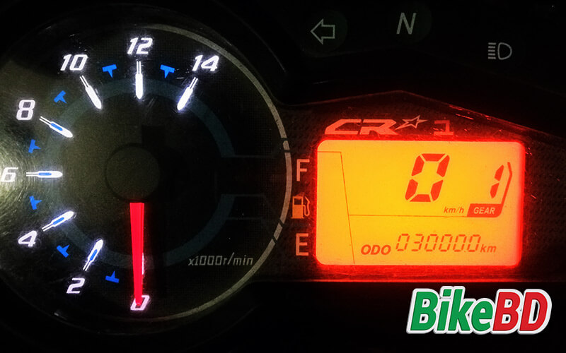 SpeedoMeter: The meter has a half digital console where you will find digital speedometer, gear shifting, odometer, and trip meter. It has an analog system as an RPM meter.