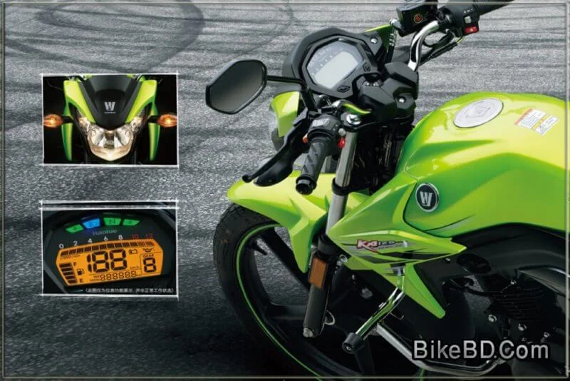 The KA135 comes with an advanced design with arrowhead headlamp, muscled fuel tank, split seat, and sporty body-panels. The headlamp is designed aggressive including pilot lamps, multi-shade housing, and sporty dents at the front. The ODO is compact and it’s a fully digital unit.