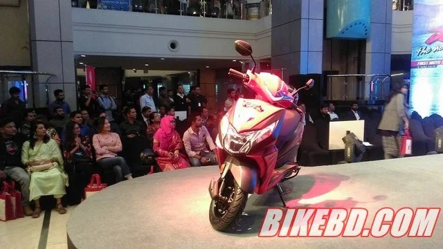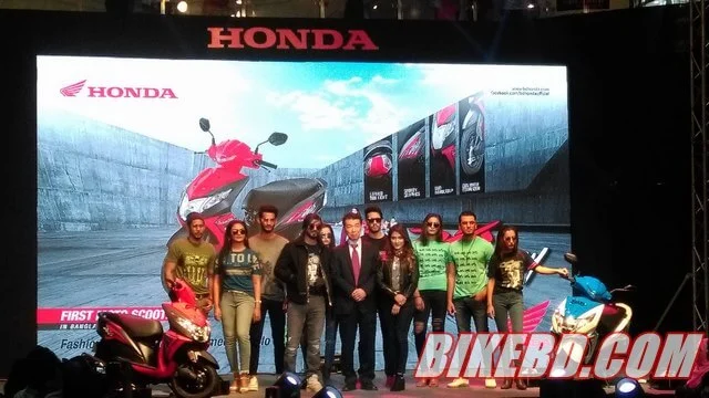 The launching program started at 3 PM, with the unveiling of the new Scooter from Honda. Then the program was followed by DJ Music, Live Fashion Show, Photo Session with Honda Dio active owners from the respective Dealer points. The opening ceremony were attended by Mr. Yuichiro Ishii (MD & CEO Of Bangladesh Honda Pvt Ltd), Mr. Shoichi Satoh (Chief Production Offer of Bangladesh Honda Pvt Ltd), Mr. Naresh Kumar Ratan ( Vice - President of Bangladesh Honda Pvt Ltd) & other officials from Bangladesh Honda Pvt Ltd. Honda Dio was first showcased at Indo Bangla Automotive Show 2017.