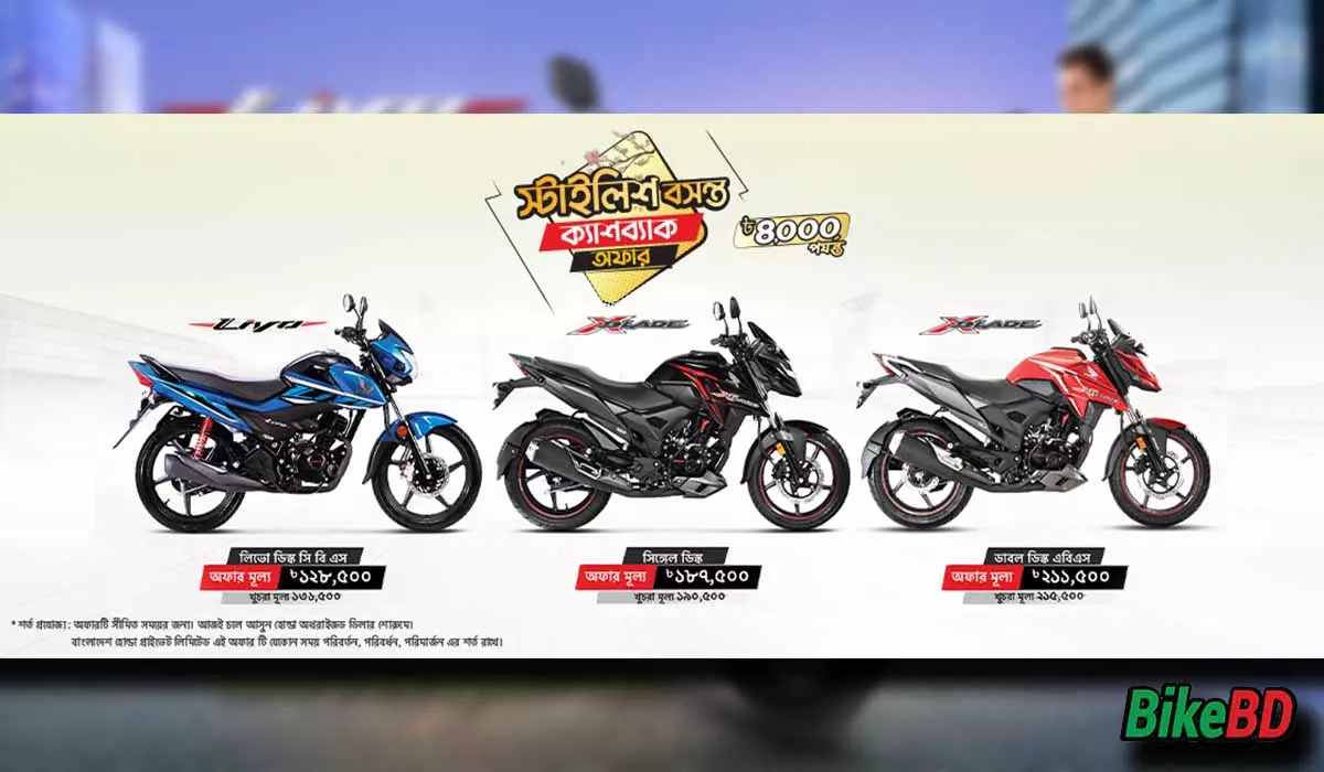 As a part of the celebration of the upcoming Basanta festival, the "Stylish Basanta Cashback Offer" has been announced for Bangladesh Honda’s most stylish models, the Livo Disc and XBlade (STD and ABS), from February 1, 2023.