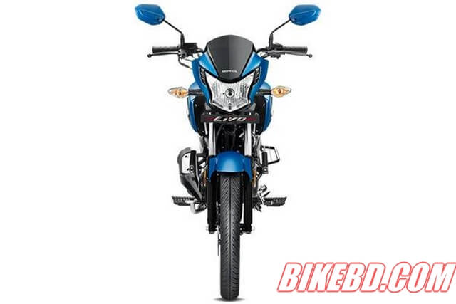 It has stylish steeled logo of Honda and glossy color which made it look more attractive. It comes in different colors and all the colors are very solid, smooth and glossy. Black parts are also very contrasted as it makes greater combination with the main color of the bike. So it's different in looks also whether the other bikes in this segment is not really have any exceptional look than standard look.