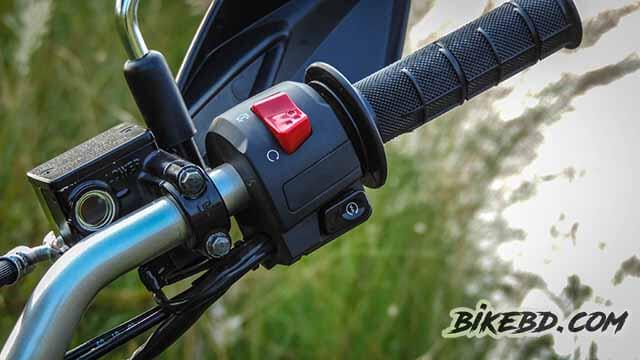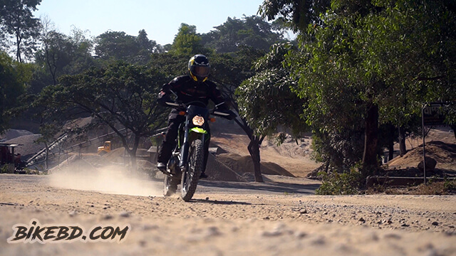 Again while jumping over the pothole or bumps the high ground clearance gave extra advantages. Furthermore, the dirt-profiled knobby tires gave tremendous grip on off-terrains. Hence the tires it also gave fantastic support on wet and gravel on-roads. But on the smooth street surface, it felt wobble and vibration in lower speed. Here one thing we should make clear as the wobbling in lower speed on the street its natural with knobby tires. But it can be minimized or omitted completely through replacing with street focused dual-terrain tires. But in such case, it will miss its extreme off-road riding capability. (1).webp)