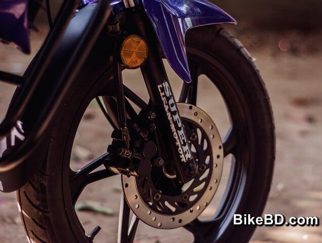 Two blue parking light attached under the chin of the bike which gives an alien look at twilight. The headlight is DC and much powerful; the tail light is LED where the clear lens indicators are much attractive. Indicators are spongy so it will bend in a collision rather than break it instantly. Tail light is conventional Lifan KP 150 style.