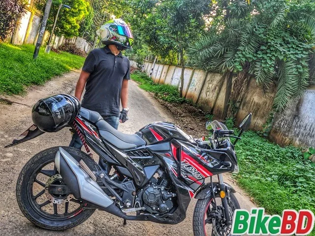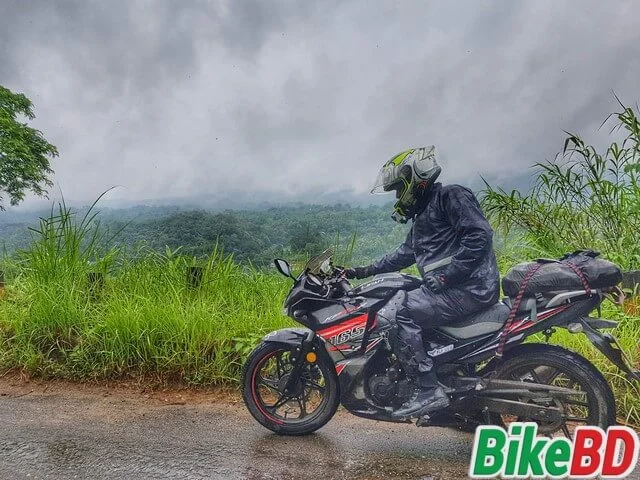 I have taken the first servicing of my bike at 1000 odd. I was getting 22-27km per liter in fast 2500km. Then I got 30km per liter. Let's talk about what engine oil I have used. I used pertonas mineral 20W40 Engine oil changed in 100,300,600,1000,1500, km. Then move to semi-synthetic 10w40 Petronas currently I have updated the breaks to the KPT petal disc for better breaks. Changed stock tire to Timsun Domino 2 for better balance. Changed stock mono-shock and used trigger mono-shock. Changed stock looking glass & using KP moto short looking glass. I get a top speed of 130km in the Dhaka-Mymensing highway.