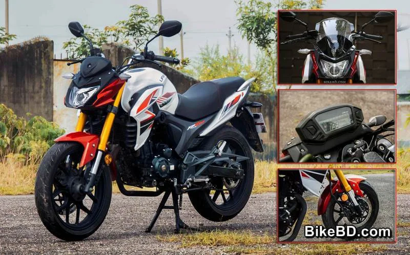 From the first glance its appearance is quite like a bone-all slender beast. But it shows its unique appearance with sporty fuel tank, naked frame, split seat and bikini fenders. The headlamp assembly is another attraction of the motorcycle. In addition silver scheme USD front shock absorber also increased its macho appearance.