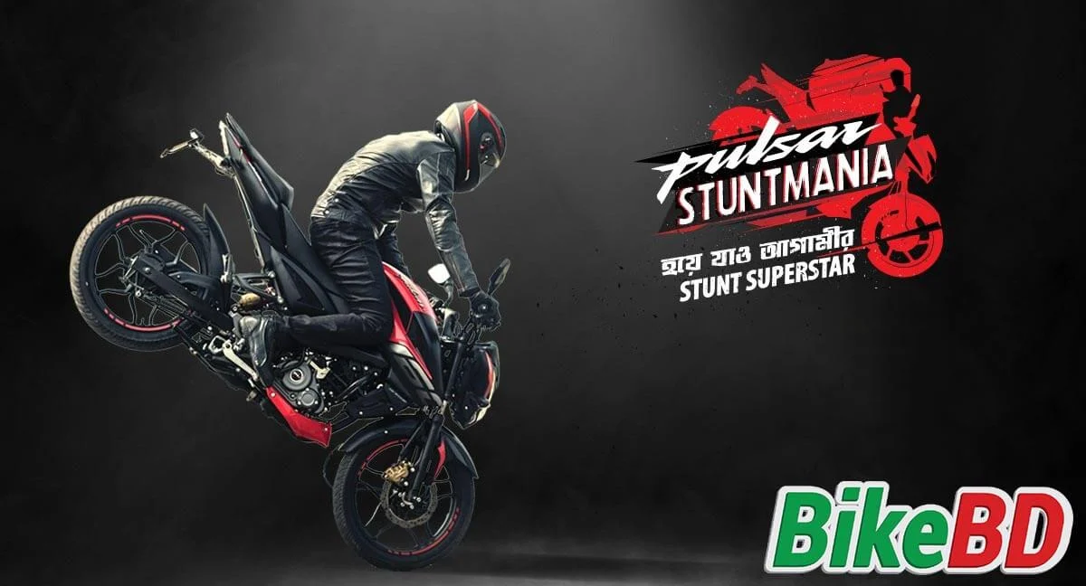 Bajaj Pulsar Stuntmania is the first-ever Motorcycle Stunt based Reality Show in Bangladesh. Pulsar Stuntmania started a while back, and the first round of the show was a selection process, wherefrom around 8,000 submissions, only a hundred were chosen for the live audition. In the first episode of the show, there was a montage of the selection process and live auditions. From the 100 people who performed in the live audition, only 30 were chosen for the main event.