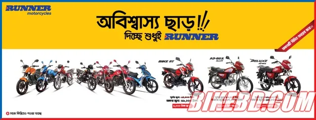 After budget there is no effect on motorcycle companies. Right now every motorcycle brand tries to grab market with their own strategies. Runner tries to give this Runner Motorcycle Offer July 2018 for grab the commuter segment market. In this offer they are giving a maximum 16,000 BDT discount on Runner AD 80S Deluxe and AD 80S. Runner gives 5,000 BDT discount on Runner Bike RT.