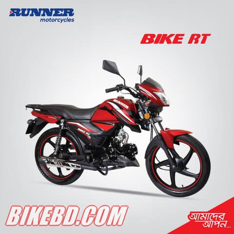 Runner Bike RT is the latest low cc commuter bike from Runner. Its popular for its price. In Bangladesh its lowest price motorcycle. This bike has a 86cc displacement engine. Engine is four stroke, single cylinder, air cooling engine. This engine can produce about to 5.8 BHP @ 7500 RPM and 5.5 NM torque @ 4500 RPM power.