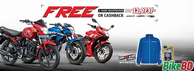 Rancon Motorbikes Ltd the sole distributor of Suzuki Motorcycles in Bangladesh is giving away Free Registration offer March 2019 with the purchase of Suzuki Gixxer, Gixxer SF & Hayate from their authorized dealer point.