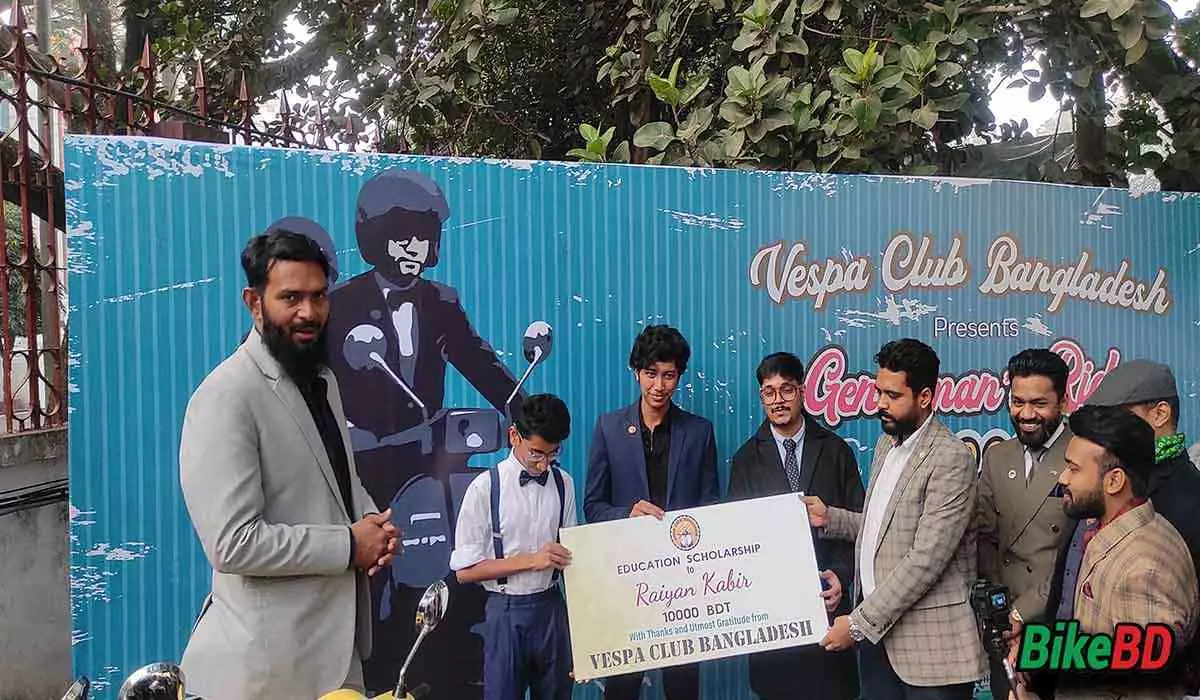 The Vespa Club of Bangladesh, initiated by Rupok Rahman, held a rally styled "Gentleman’s Ride," which is hosted internationally and inspired by a true story, with the aim to promote the elegance and simplicity of using a traditional ride like a Vespa, a two-wheeler, without causing any road hazards.