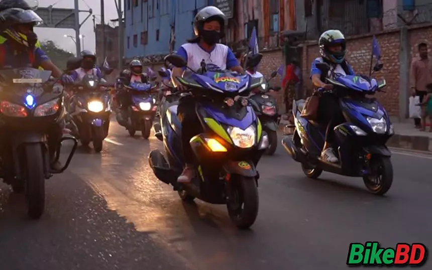 They start a rally from the Yamaha Flagship Center, then round up the Hatirjheel and the rally ended up in front of the flagship center. There was a cultural event and DJ show for the women riders who attend this event.