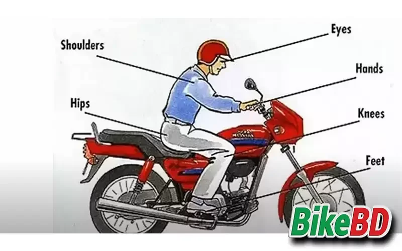 এই প্রশ্নের উত্তর জানার আগে আপনাকে জানতে হবে একটি বাইকের জন্য আদর্শ সিটিং পজিশন কোনটি। বাইকে বসার পর আপনার কাধ থাকবে একদম রিলাক্স মুডে, কোন দিকে বাকা তেরা অথবা খুব বেশি সামনে ঝুকে না। আপনার হাতের কনুইগুলো থাকবে হাল্কা ভাজ করা এবং আপনি আপনার হাটু দিয়ে বাইকের ট্যাংকে গ্রিপ করবেন।