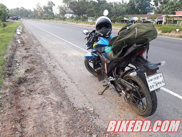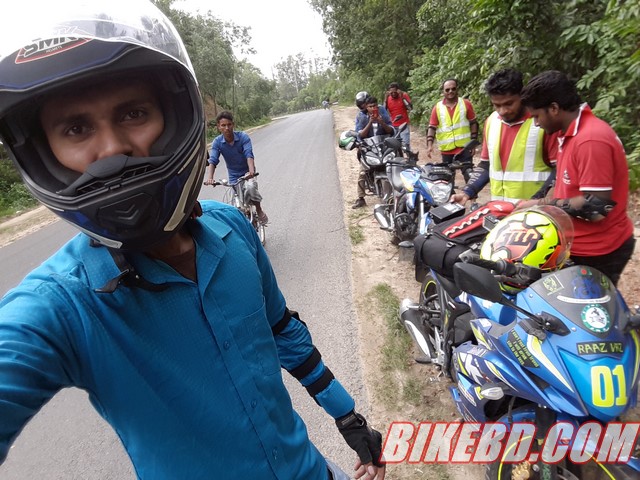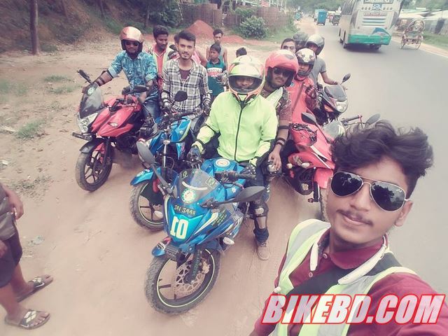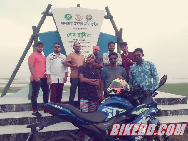 কখনো বা শাওন ভাই পালসার এএস নিয়ে আমাদের লীড দেন কখনোবা আমি জিক্সার ২০১৭ নিয়ে কখনো আরেফিন ভাই এভাবেই হাওয়ার গতিতে ছুটে চলি| সকাল তখন ৯.৩০ আমরা পৌঁছাই ফেনী সেখানে সকালের নাস্তা সেরে আবার ১০ টায় রওনা দিই| দুপুর বারোটা বাজে আমরা পৌঁছাই চট্টগ্রাম কর্ণফুলী ব্রিজের উপর সেখানে কিছু সেলফি নিয়ে আবারো ছুটে চলি কক্সবাজার এর এর উদ্দেশ্যে। যেখানেই বিরতি নেবার জন্য থেমেছি সাধারণ জনগণের প্রতিক্রিয়া আমাকে করেছে মুগ্ধ। সবাই আমাদের গোল করে ঘিরে ধরত আগ্রহের সাথে জানতে চাইত শরীরে কি পরেছি(সেফটি গিয়ার)।