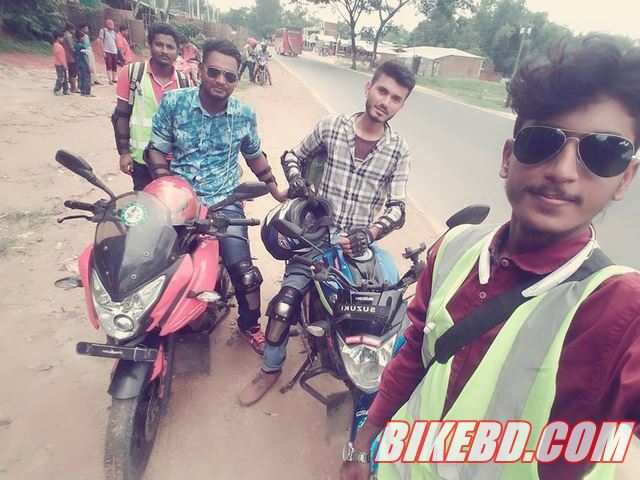 তার মধ্যে একটি Honda CBR 150R Repsol এবং একটি নীল কালার Yamaha R15 v3 থাকে আমরা তাদের থামস আপ দেখাই তারাও আমাদের দেখায় তারপর আবার আমরা বাইক স্টার্ট করি চলতে থাকি ১০ মিনিট চলার পরে দেখি সামনে একটি বাইক এক্সিডেন্ট আমরা থামি, কাছে গিয়ে দেখতে পাই একটু আগে যাদের থামস আপ দেখেছিলাম তাদের মধ্যে Yamaha R15 v3 নীল মোটরসাইকেলটি রাস্তার পাশে পড়ে আছে প্রত্যক্ষদর্শীদের মতে তখন মোটরসাইকেলটির গতি ১৪০ ছিল প্রায় যাইহোক তাদের বিষয়টি দেখে খারাপ লাগলেও আমরা সেখান থেকে রওনা দিই আবারও ছুটতে থাকি|