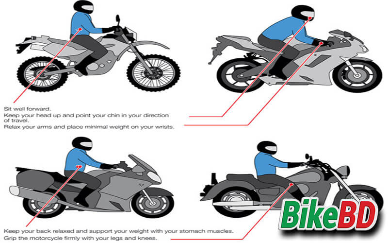আপনি যখন বাইক রাইড করবেন তখন নিজের বডিকে বাইকের সাথে মিলিয়ে নিন, বাইক একদিকে কাত আপনার বডি অন্যদিকে এই জাতীয় ভুলগুলো কখনো করবেন না। বাইকের সাথে নিজের বডি ব্যালেন্স করে নিতে পারলে আপনি যে কোন রাস্তায় বাইক খুব সহজে নিয়ন্ত্রণ করতে পারবেন।