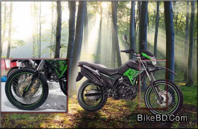 ব্রেকিং সিস্টেমে, বাইকটির সামনের হুইলে রয়েছে হাইড্রোলিক ডিস্ক ব্রেক। ডিস্কটি পেটাল ডিস্ক, আর এর ভেন্টিলেশনও বেশ ভালো। তাই অফরোডের ধুলা-কাদাতে বেশ ভালো সাপোর্ট দেবে। আর এর পেছনের হুইলে রয়েছে নিয়মিত ড্রাম-টাইপ ব্রেক। সুতরাং সাধারন মেইনটেন্যান্স ফিচার বিচারে এটি একটি ব্যালান্সড ফিচার।