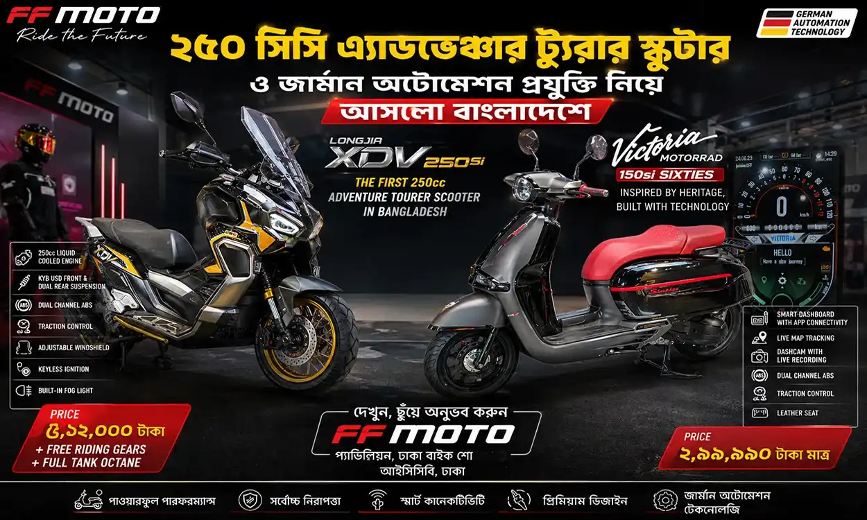 FF Moto ২৫০ সিসি এ্যাডভেঞ্চার ট্যুরার স্কুটার ও জার্মান অটোমেশন প্রযুক্তি নিয়ে আসলো বাংলাদেশে