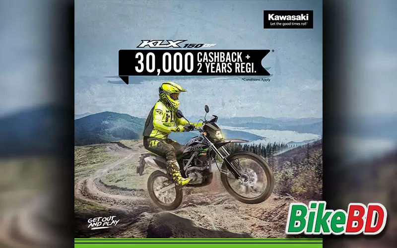এছাড়া Kawasaki KLX 150BF এর ক্যাশব্যাক অফার এবং সেই সাথে দুই বছরের রেজিস্ট্রেশন ফি ডার্ট বাইক লাভার বা ডুয়েল পারপাস হিসেবে যারা ব্যবহার করতে চান তারা ক্রয় করতে পারবেন।