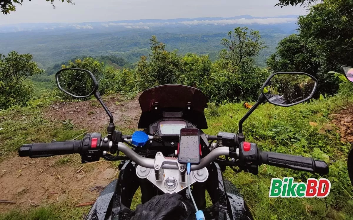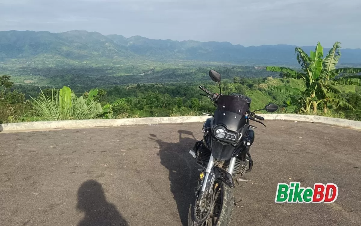 পাহাড়ে পারফর্মেন্স অস্থির। একবারও মনে হয় নাই পড়ে যাবো বা উঠতে পারবো না, ডিম পাহাড়ের ২৮২১ ফিট (৮৬০ মিটার) রেকর্ডেড এলেভিশনের পাহাড়ি রাস্তা অনায়াসে উঠে গেছি। এক জায়গায় খাড়া পাহাড়ে উঠার সময় উল্টাপাশ থেকে ট্রাক পুরা রাস্তা ব্লক করে নামা শুরু করে, ব্রেক করলে নির্ঘাৎ পড়ে যাবো তাই ব্রেক না করেই ক্লাচ + থ্রটল মেরে বাইক ধরে রেখেছিলাম যাতে বাইক বন্ধ না হয় কোন অসুবিধাই হয় নাই।