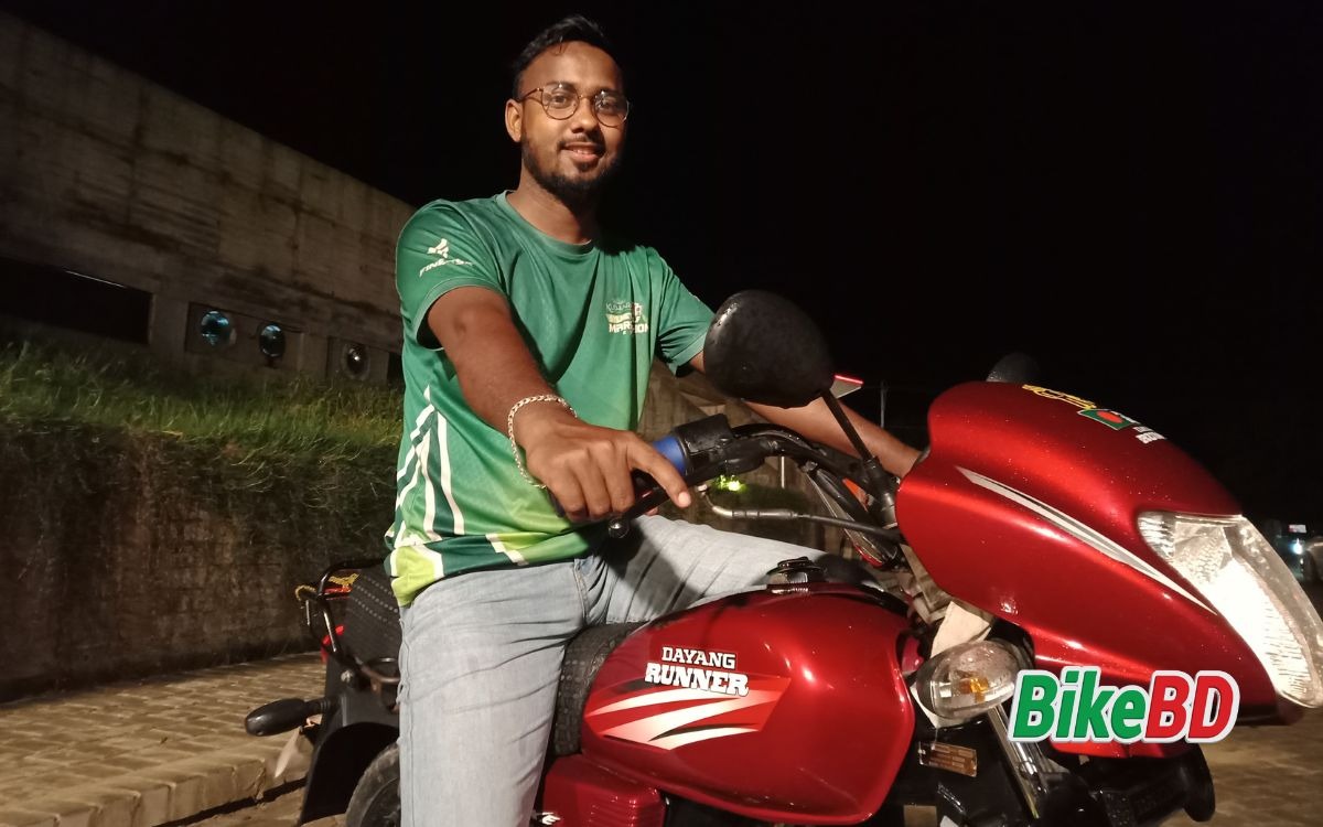 আমি বাইকটা কিনেছিলাম সিলেটের রানার এর শোরুম থেকে , আমার বাজেট কম থাকার কারনে আমি এই বাইকটি পছন্দ করি। আমি বাইকটি চালিয়েছি ১৩,০০০ কিলোমিটার। এই বাইকটি আমার চালানো আগের সকল বাইক থেকে একটু ব্যতিক্রম স্মুথ , মানে চালিয়ে মজা পেয়েছি । নিজের বাইক বলে বলছি না সব কিছু মিলিয়েই খুব ভালো বলছি।