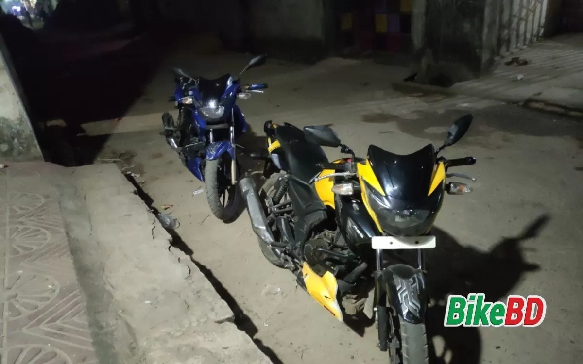 হলুদটার পেছনের চাকা ১২০ লাগানো। এতে কন্ট্রোল কর্নারিং ভালো হলেও মাইলেজ, টপ হালকা একটু কমে। টায়ার পাল্টালে টিভিএস টায়ার না লাগানো ভালো। স্টকটা অত সুবিধার না। তবে কিনে মাত্র পরিবর্তন করে ফেলতে হবে এমন না। হলার লাগিয়েছিলাম সেই ক্ষেত্রেও মাইলেজ কিছুটা কমে যায়।