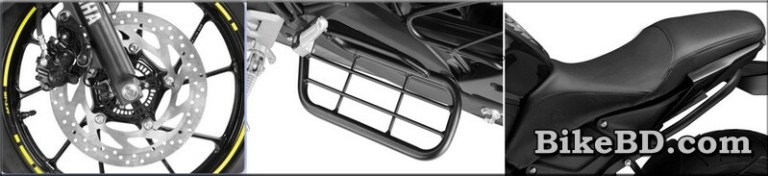 - বাইকটিতে শাড়ি গার্ড এবং রেয়ার মাডগার্ড যুক্ত করা হয়েছে। রেয়ার মাডগার্ডটি বেশ স্টাইলিস।