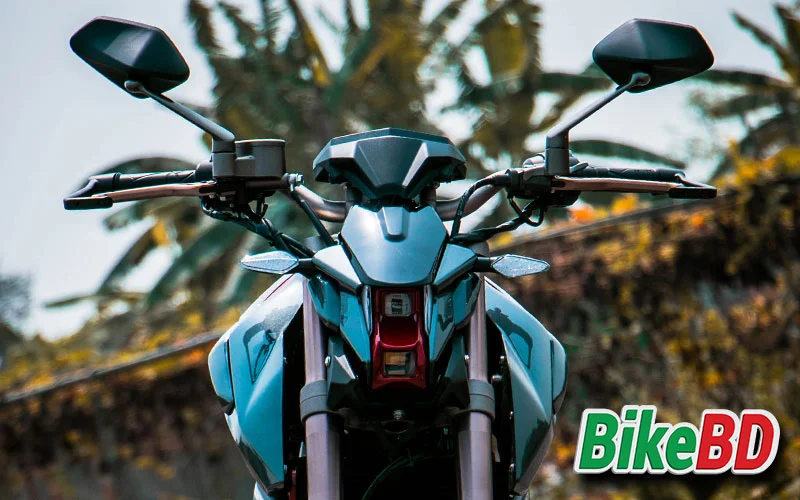 Zontes Bike তাদের নিজস্ব ফ্যাক্টরিতে এগুলো তৈরি করেছে, কারণ তারা যাতে এর কোয়ালিটি নিশ্চিত করতে পারে। আপনি যদি হ্যান্ডেলবারটির দিকে লক্ষ্য করেন, তবে দেখতে পাবেন যে এটি এডজাস্টেবল লিভার সহ এতে ব্রেক প্রোটেক্টর দেয়া হয়েছে। এরপর আসে এর স্পিডোমিটার, যা একদম ইউনিক এবং সেই সাথে রয়েছে এর সুইচ গিয়ার্স।