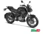 The streetfighter design of the motorcycle showcases an aggressive and compact aesthetic that emphasizes its muscular street presence. Equipped with modern technical features, including LED lights, LED DRLs (Daytime Running Lights), a fully digital odometer, and various electrical enhancements. The