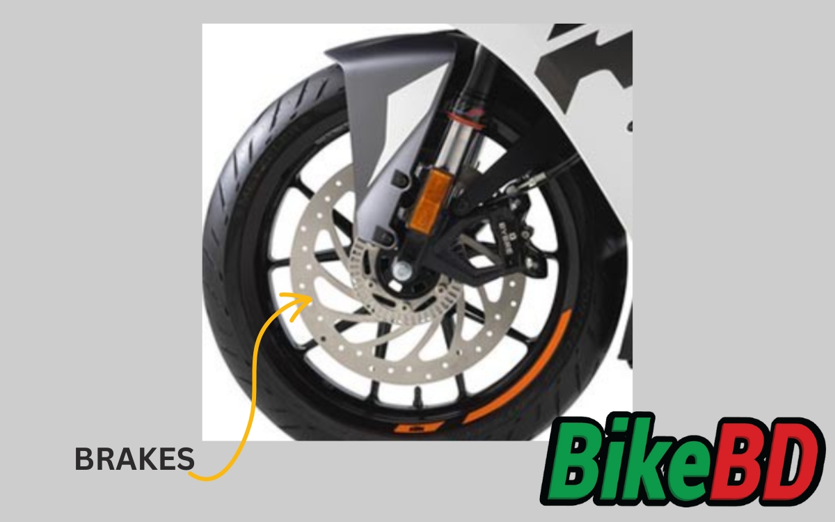 The KTM RC 390 comes equipped with high-performance Brembo brakes, which provide excellent stopping power and control. The bike features a 320mm front disc brake and a 230mm rear disc brake, both of which are hydraulically operated.